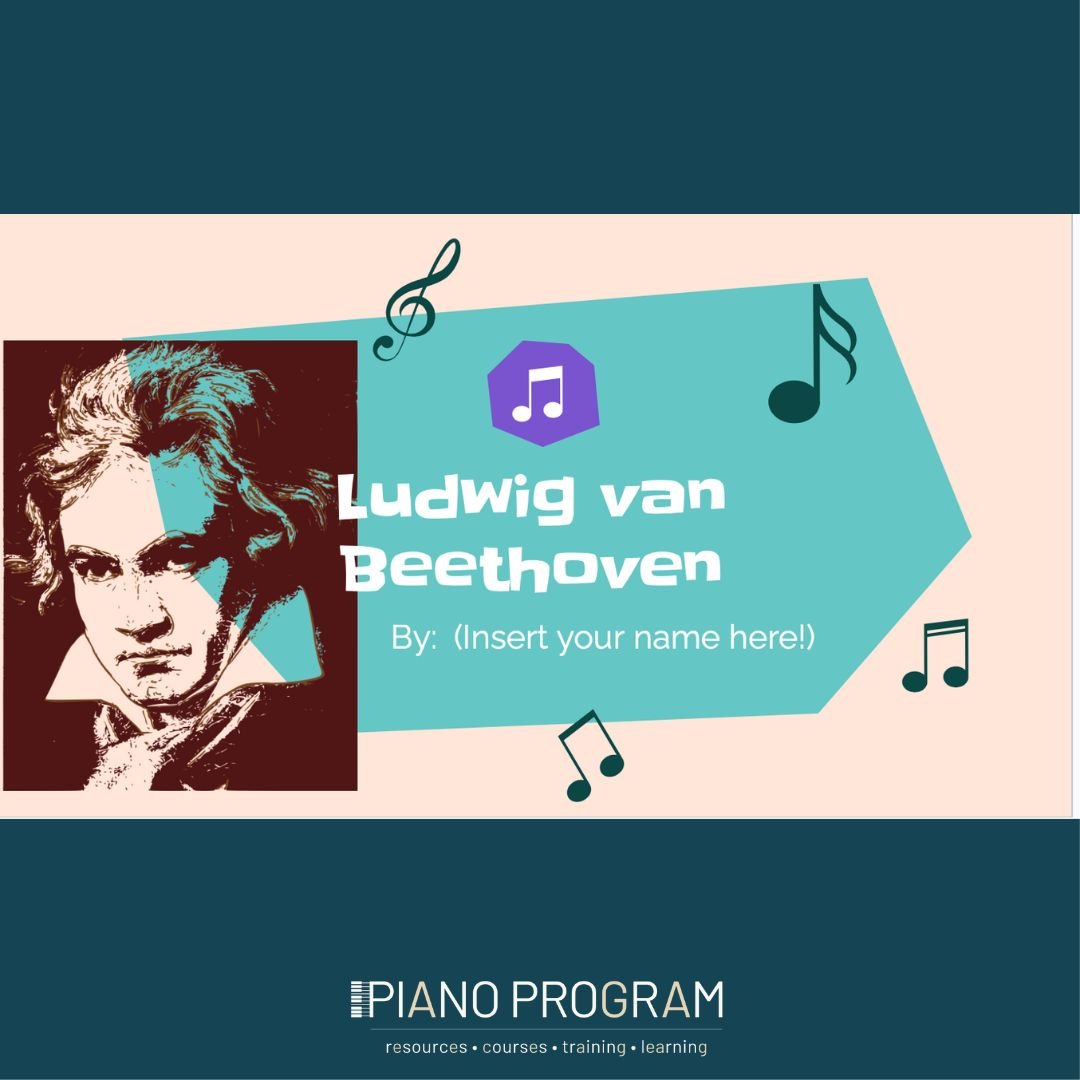 Since it's Beethoven's 250th birthday, let's dig into having our students learn about Beethoven. This is an editable google slide, upon purchase, you will receive a link to copy to your own google drive. Then, together with students, you can help them fill in the 'missing parts' of the google slide. I have comments and speaker notes on the slides with suggestions on what webpages to go to and what videos to watch to find the answers to complete the slides. Once the slide is completed, your students will have a finished project that they helped create!