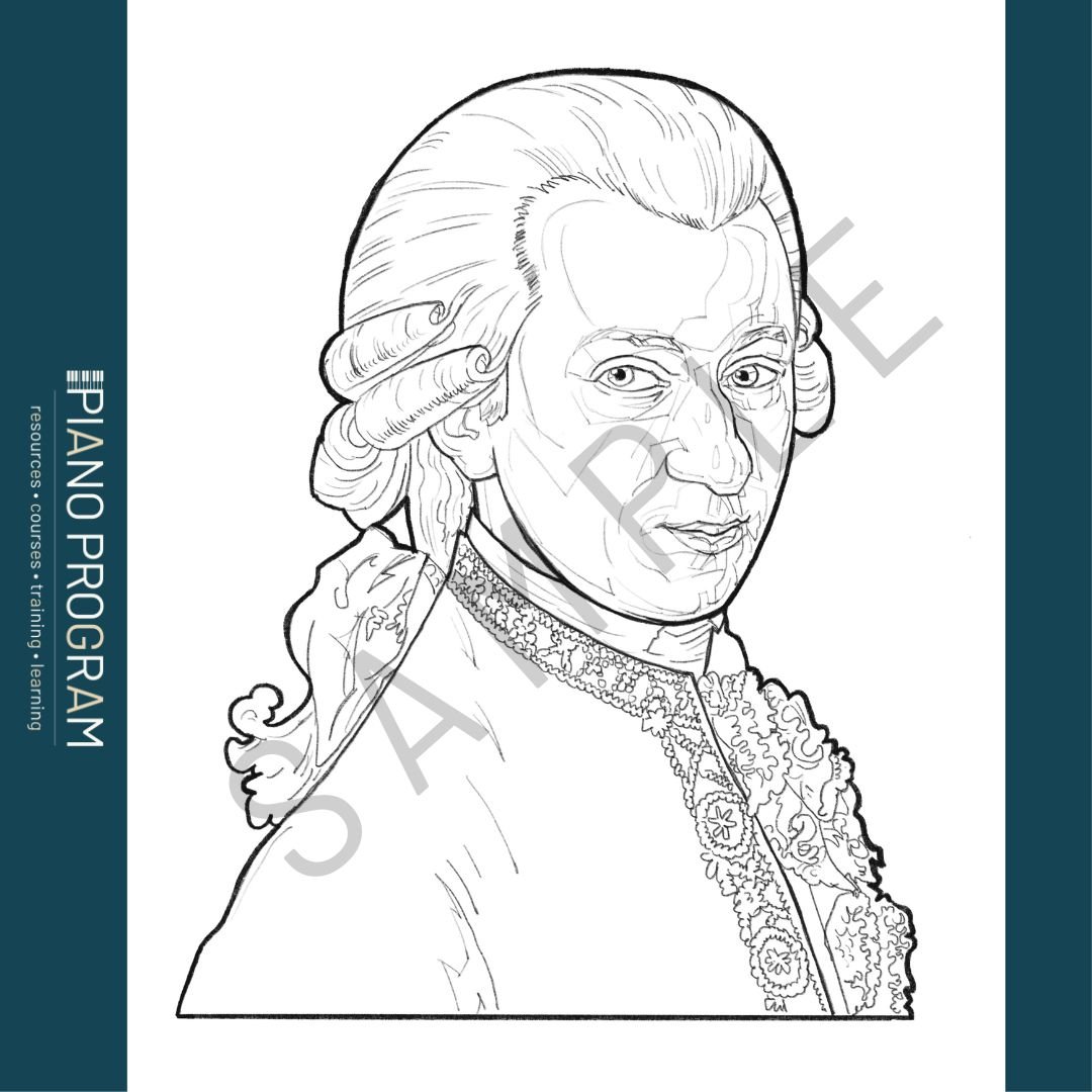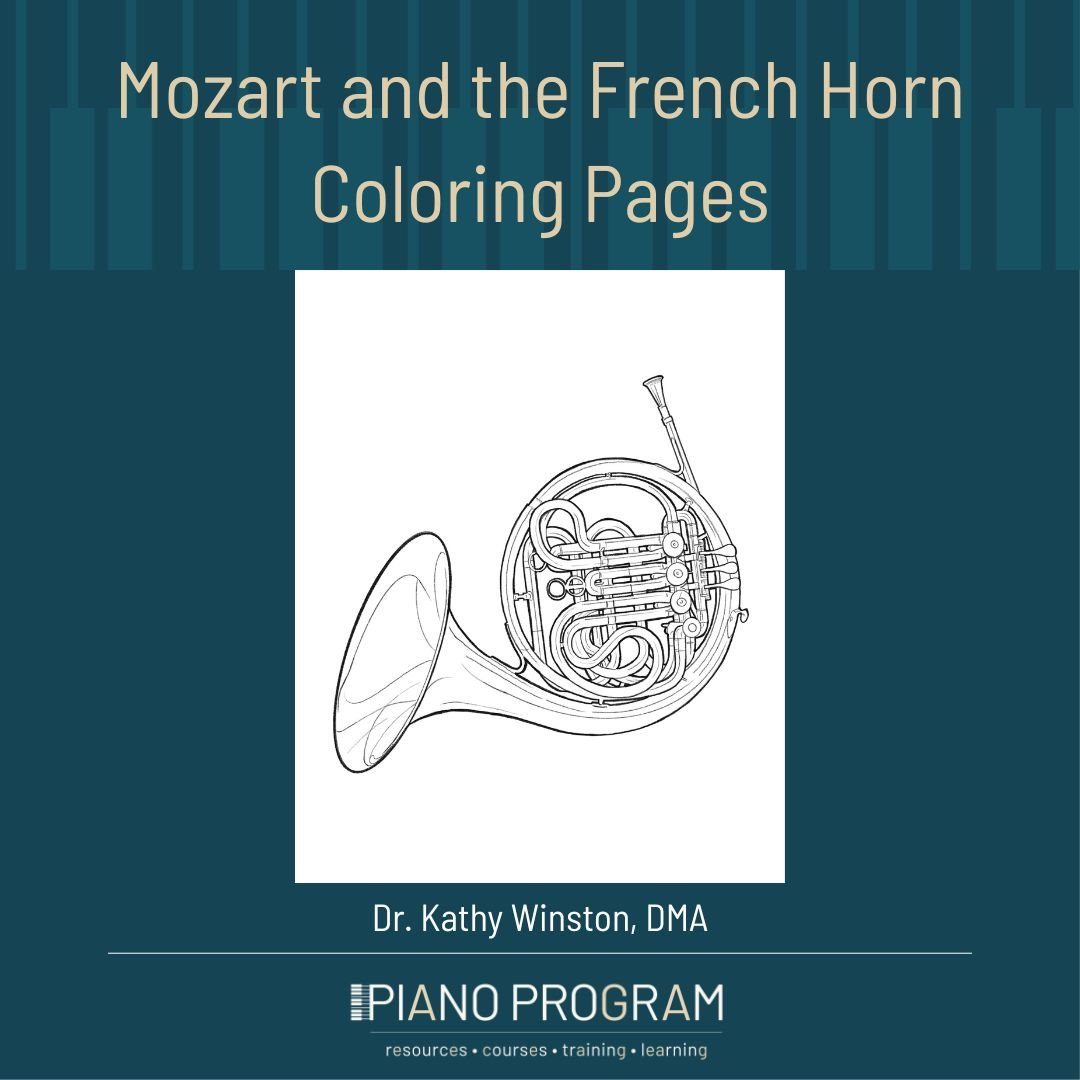 Two coloring pages for students - Mozart and the French Horn.